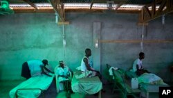 Sommairement abrités de tôles trouées et de bâches en plastique, les villageois contaminés par le choléra s'entassent sur la galerie du petit dispensaire de Randelle.