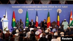 Mais le président français a enjoint le G5 Sahel de démontrer l'efficacité de cette force pour convaincre les donateurs, alors que le Conseil de sécurité de l'ONU a salué par une résolution le 21 juin ce déploiement, sans lui délivrer ni mandat ni fonds.